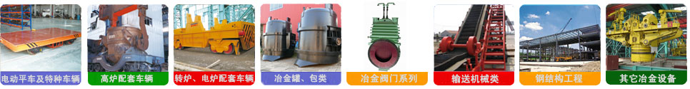 公司產(chǎn)品有ZT系列鐵水罐車、鋼包車、渣罐車、渣盤車、電動平車、過跨車、鐵水稱量車、液壓傾翻車、廢鋼料籃車、中間罐車、修爐車、爐底車、鎳鐵礦熱爐料罐車、汽運(yùn)鐵水車以及各種鐵水罐(包)、鋼水包(罐)、渣罐、渣盤、中間罐、鋼包加蓋、龍門吊鉤、鋼包傾翻機(jī)、鋼包回轉(zhuǎn)臺等產(chǎn)品。